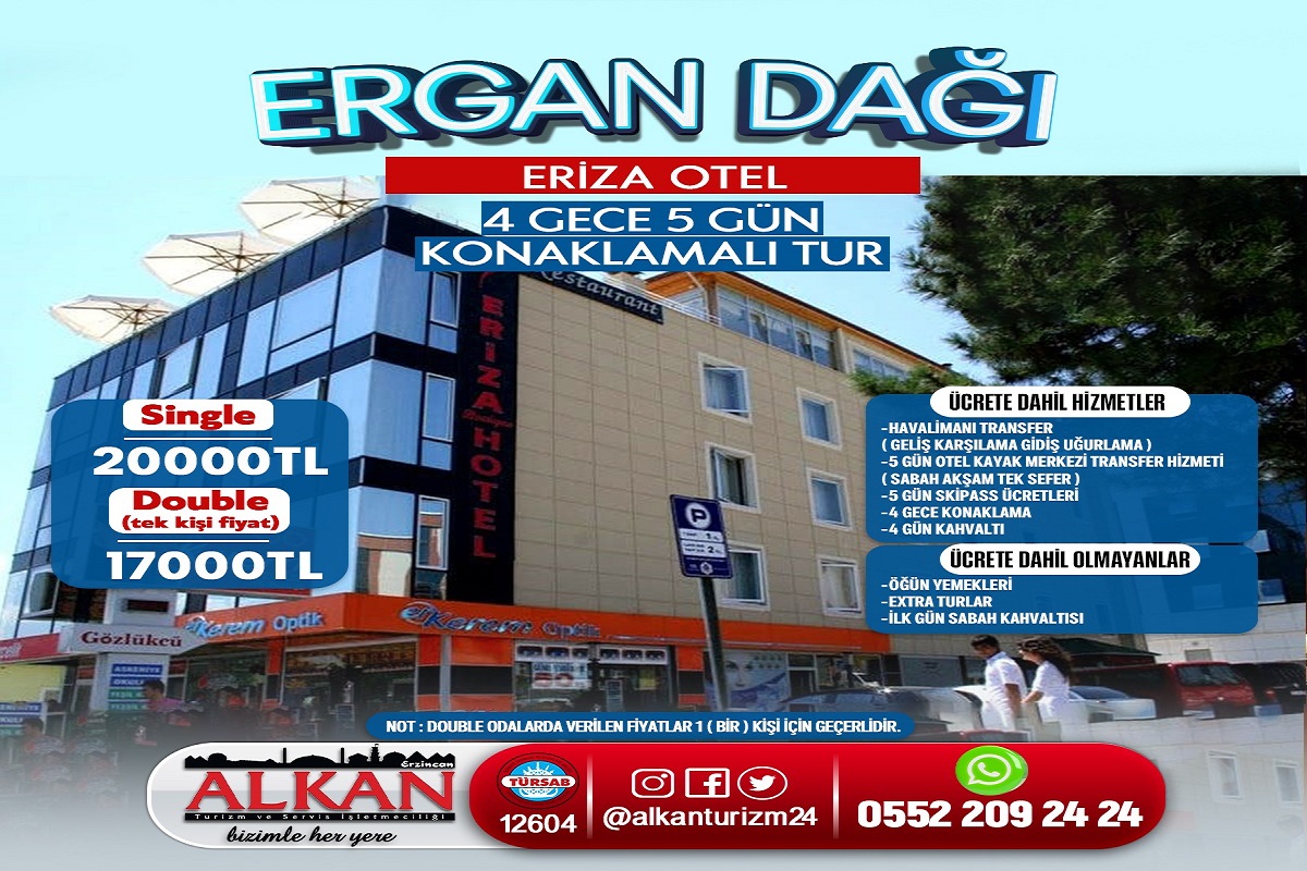ERZİNCAN ERGAN DAĞI KAYAK TURU ERİZA OTEL 4 GECE 5 GÜN
