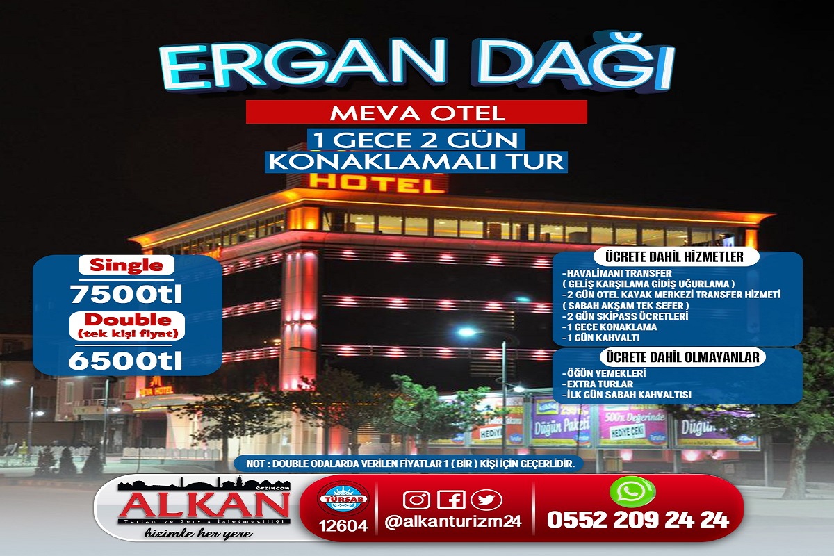ERZİNCAN ERGAN DAĞI KAYAK TURU MEVA OTEL 2 GECE 3 GÜN