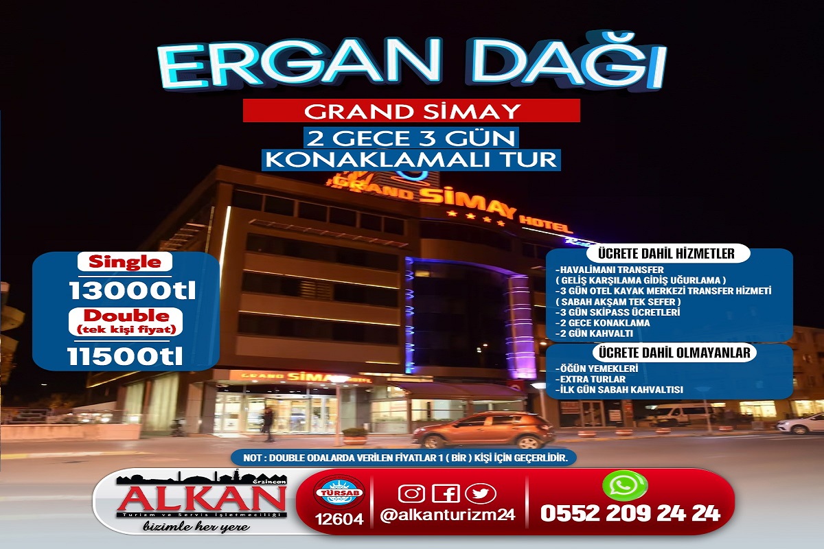 ERZİNCAN ERGAN DAĞI KAYAK TURU GRAND SİMAY OTEL 2 GECE 3 GÜN